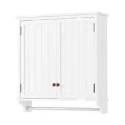 - Save floor space while adding storage to your bathroom with this medicine cabinet featuring a smooth, white painted finish, decorative side grooves and a two-tone silver handle