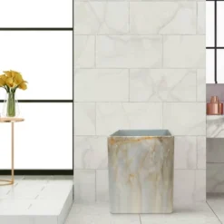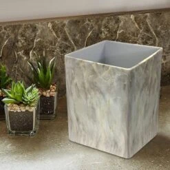 The Trash cans are sized perfectly for smaller space, but still have plenty of room for your recyclables and garbage, made of high-quality durable materials these dustbins will hold up to everyday useThese garbage bins can be used for trash recycling or storing itemsThe beautiful slim square design combined with the Resin Marble with Marble Finish make them the perfect compliment to any home