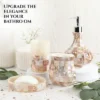 - A compact footprint allows each accessory to fit even the most crowded counter spaces. Hardy resin is chosen for its ability to last years in moisture-rich environments, and the marble pattern finish does not fade even when in contact with bare hands, water, or soap.