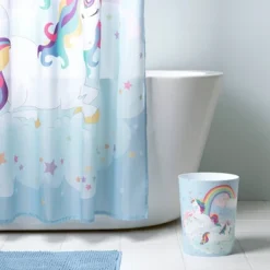 - Easy Care-machine wash cold and tumble dry low Finish the look with the coordinating Unicorns and Rainbow Bath Accessories and Wastebasket
