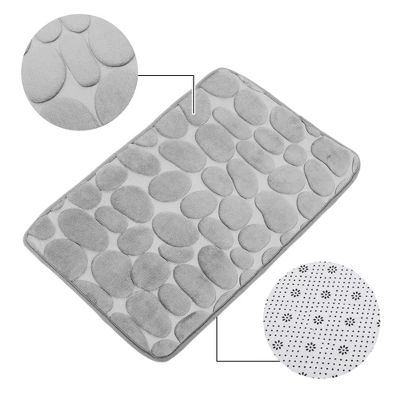 Item Function: ​1. Soft rugs: The surface of the rug is made of flannel, which is soft and comfortable, caring for your feet.2. Keep the floor clean: The rug helps to keep your floors clean and dry.3. Easy clean and maintain: Hand or machine washable with warm or cold water.4. Material: The bath mat is made of flannel surface, memory foam, polyester, and latex backing, the item is non-slip, super absorbent and soft.5. Anti slip: The backing of the bathroom rug is non-slip design, providing a strong grip to keep it in place on floors.6. Extremely absorbent: The bath mat absorbs extra water and moisture in your bathroom, keeping any floor dry.​ Specifications: Material: Polyester, Memory Foam, Polyvinyl Chloride, Color: Gray, Size : 60x40cm / 23.62″x15.75″(L*W), Pattern: Cobblestone, Product Care Instructions: Machine Washable, Package List: 1 Pcs Bathroom Mat.