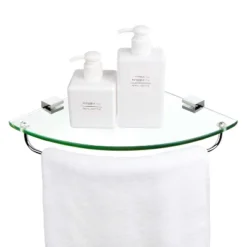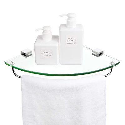 Vdomus offers an attractive and fashionable shower shelf that is perfect for organizing all your bathroom toiletries. This tempered corner shelf can hold 11 pounds and has an overall dimension of 9.8 x 9.8 x 1.9 inches. Its stainless steel bracket and polished chrome finish rail are durable and rustproof, and the rail protects your toiletries from accidental falls. Installation is easy and quick with all the necessary accessories included. Get organized with Vdomus!
