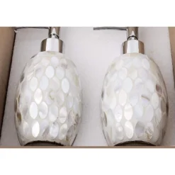 Introducing Whole Housewares’ Premium Soap Dispenser! This two-piece set features high-quality mosaic designs with a sleek silver finish. Perfect for liquid soap, dish soap, lotion, shampoo, and more. Makes a great housewarming gift for friends and family. Capacity 12.3oz; Size 3.43*3.43*7.48in. Set of 2. Durable and stylish set from Whole Housewares to brighten any room! Perfect Gift – These Beautiful And Durable Bathroom Accessories Make The Perfect Housewarming Gift For Any And All Of Your Friends And Family! The Exquisite Glass Mosaic Designs Are Both Stylish And Practical.