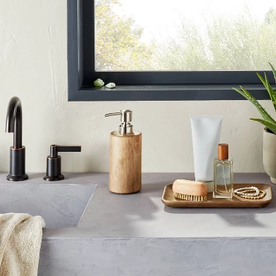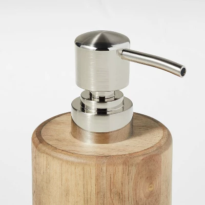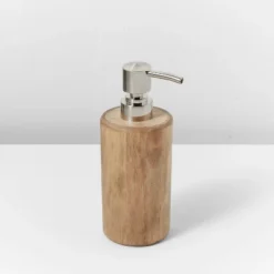 Bring functional style to your bathroom decor with this Wood Soap Pump from Casalunaâ„¢. Designed with an easy-to-use pump, this wooden soap pump comes in handy for dispensing anything from liquid soap and hand wash to shampoo or lotion. Showcasing a classic cylindrical silhouette, it features a natural wooden finish that easily blends with rustic and modern bathroom decor styles. Simply add a coordinating soap dish, canister or bath tray to your bathroom sink for a cohesive look.