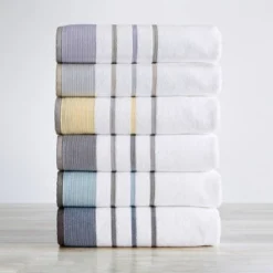 100% Cotton Medium Weight Floral Border Infinity Trim 4 Piece Bath Towel Set By Blue Nile Mills